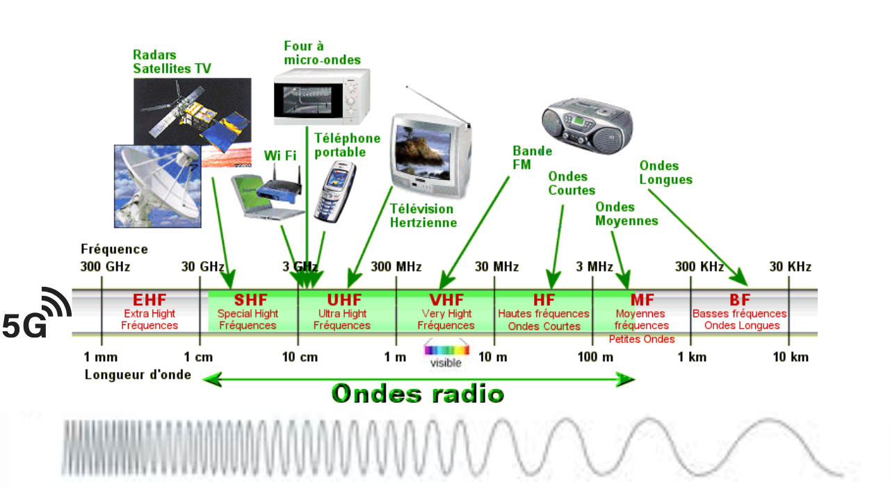 📡 Hautes fréquences (HF) → Wi-Fi, Bluetooth, 4G, 5G, objets connectés.