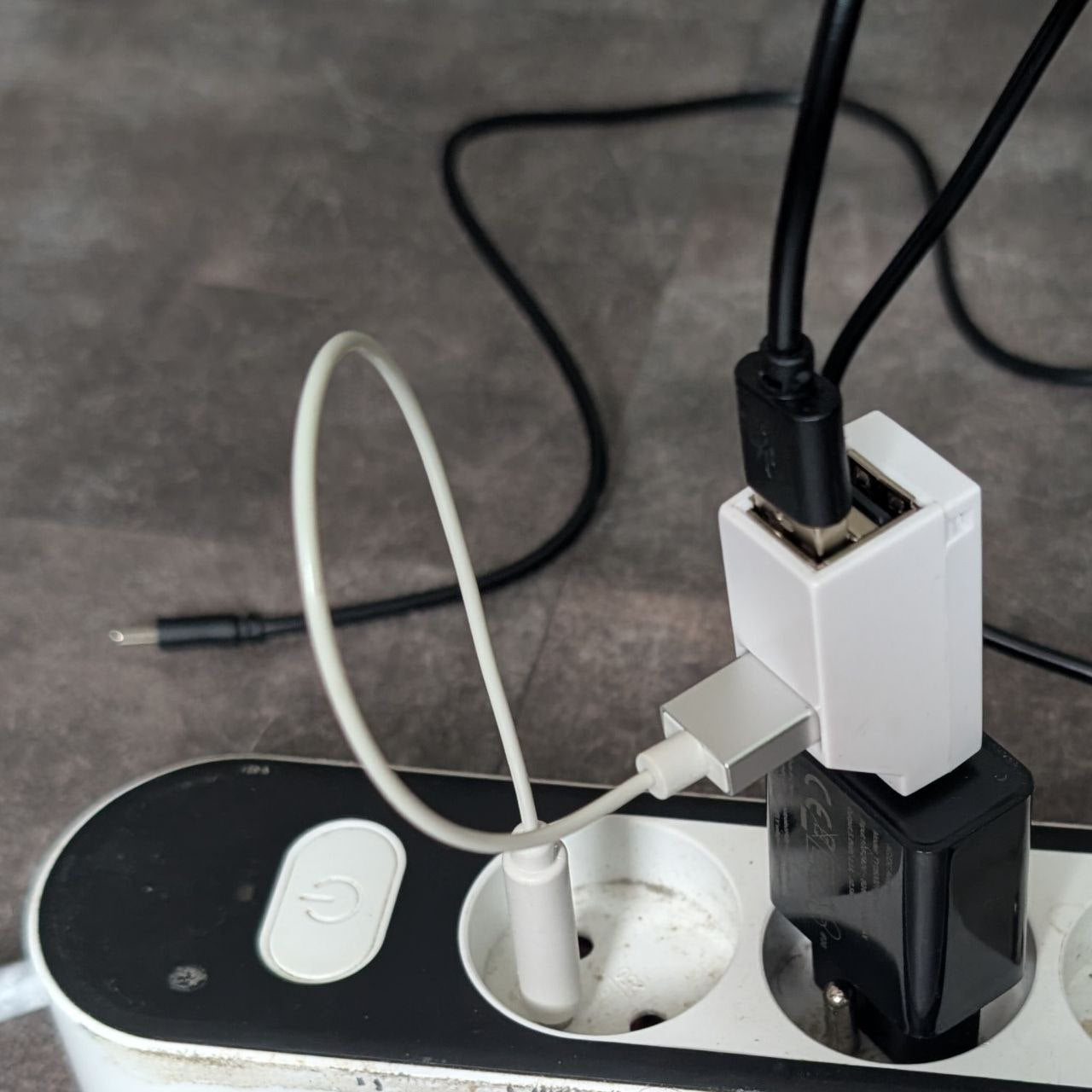 "Le câble se branche simplement à une prise USB ou à une rallonge multiprise avec 2 entrées USB. Reliez ensuite le câble usb terre à un téton de prise de terre, Ce qui a pour effet de mettre à la terre le deuxième port usb. Utilisez le deuxième port usb pour recharger vos appareils."