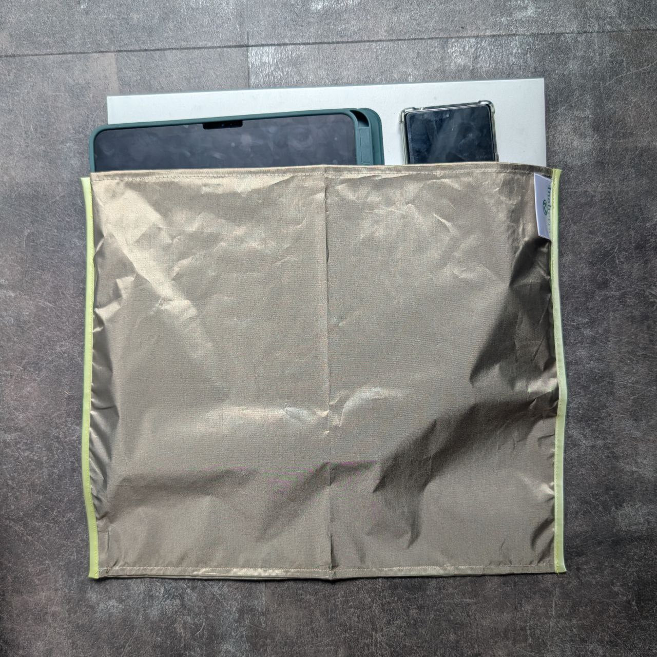 Cette housse faraday de 35 cm × 40 cm, confectionnée en 100 % tissu anti-ondes hautement performant, agit comme une véritable cage de Faraday portable.